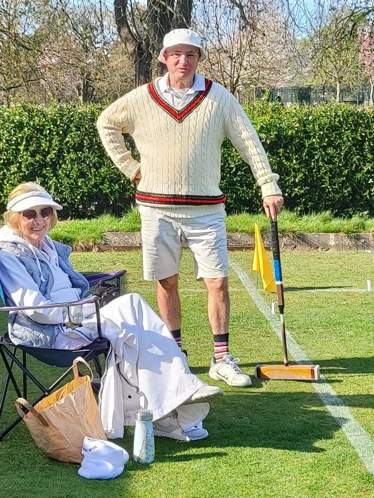 The weather certainly played its part, with a chilly morning developing into a gloriously sunny day, which allowed Ron to play his stopping bisque by discarding his track suit bottoms to reveal his knees at a key strategic moment.