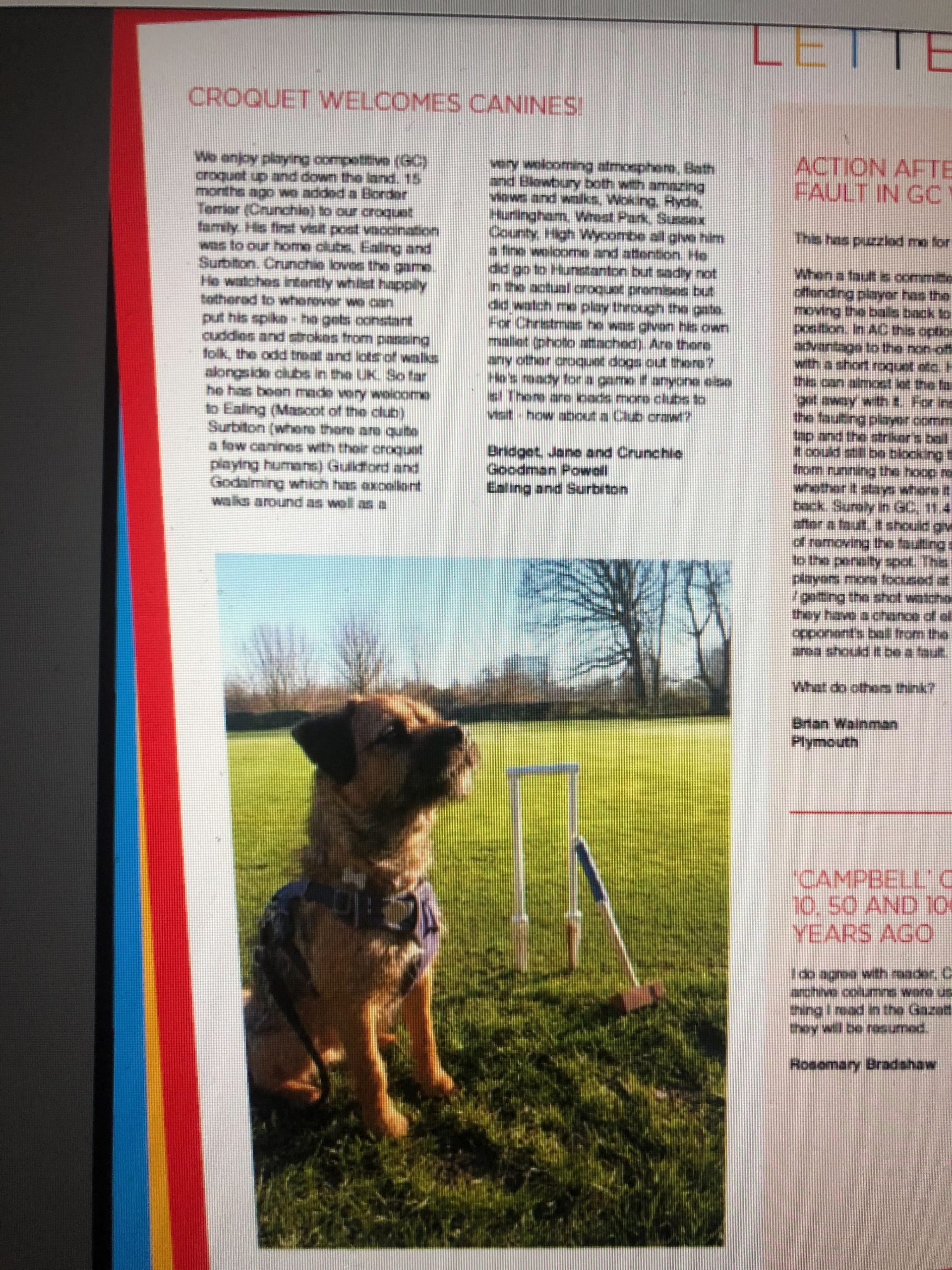 Bridget and Jane’s friend Crunchie has a starring role in the latest Croquet Gazette.